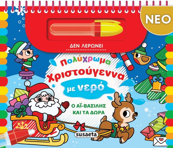 Ανακάλυψε κι εσύ τη μαγική δύναμη του νερού! Γέμισε το πινέλο με νερό και ζωντάνεψε τον Αϊ-Βασίλη και την παρέα του στον Βόρειο Πόλο! Καθώς διαβάζεις τη μικρή ιστορία, «χρωμάτιζε» τις σελίδες με το νεροπινέλο. Ως διά μαγείας θα αποκαλυφθούν τα πιο απίθανα χρώματα! Όταν στεγνώσουν, θα εξαφανιστούν, όμως κάθε φορά που θα περνάς τις σελίδες με το πινέλο, θα ξαναζωντανεύουν! Έτσι η διασκέδαση δεν τελειώνει ποτέ!