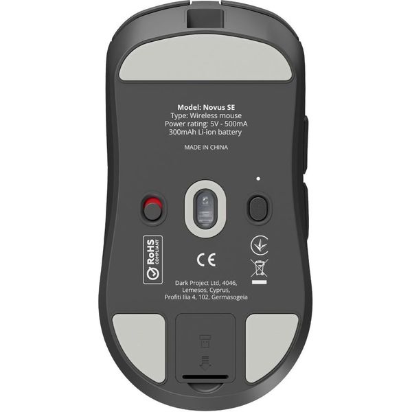 Το Novus SE της DarkProject προσφέρει μια απολαυστική εμπειρία gaming με κορυφαία ακρίβεια, αίσθηση και ταχύτητα, μέσα σε ένα εξαιρετικά ελαφρύ και κομψό ασύρματο ποντίκι. - Με βάρος μόλις 48g και εξαιρετική εργονομία, μειώνει την κόπωση του χεριού κατά τη χρήση και αυξάνει την ακρίβεια στον χειρισμό. - Ο αισθητήρας PixArt PAW3395 με ανάλυση έως 26.000 CPI, ταχύτητα 650 IPS και επιτάχυνση 50G εξασφαλίζει αψεγάδιαστη ακρίβεια σε κάθε κίνηση. - Οι κύριοι διακόπτες Huano Transparent Blue Shell Pink Dot προσφέρουν γρήγορα, σταθερά και ευκρινή κλικ με διάρκεια ζωής 80 εκατομμυρίων πατημάτων. - Η σύνδεση μέσω 2.4GHz ή USB προσφέρει άμεση απόκριση με polling rate 1000 Hz, ενώ η μπαταρία των 300 mAh προσφέρει έως 40 ώρες λειτουργίας με μία μόνο φόρτιση. - Τα 100% PTFE πέλματα προσφέρουν αξεπέραστη κύλιση σε κάθε επιφάνεια, ενώ η ροδέλα με encoder TTC Gold Dustproof προσθέτει ακρίβεια στον έλεγχο.