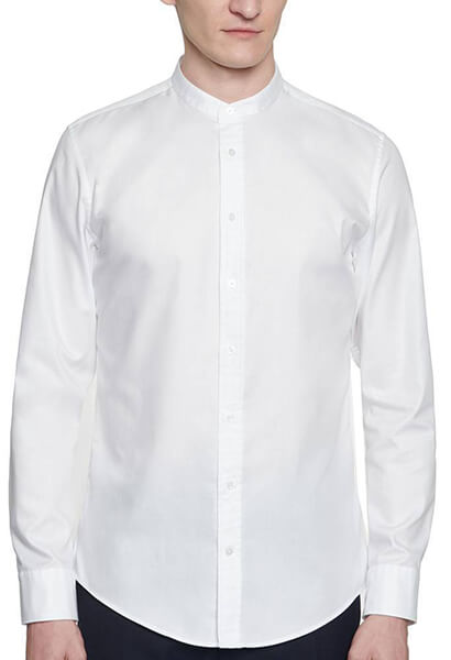 Διαθέτει Mao γιακά, μακριά μανίκια και κλείνει με μικρά κουμπιά κατά μήκος.