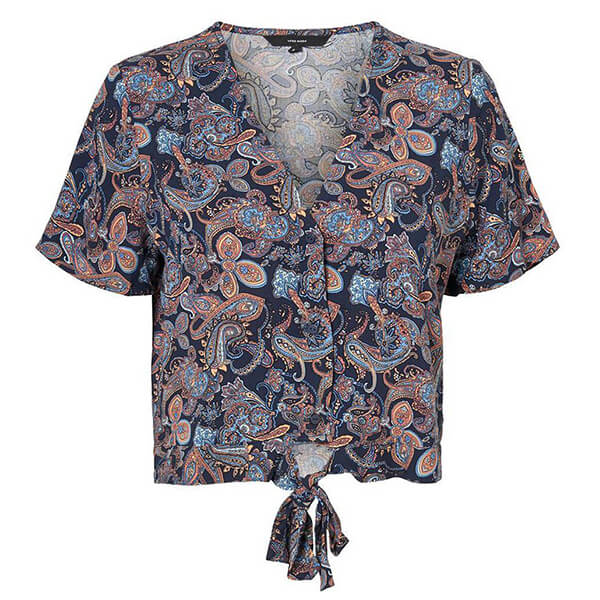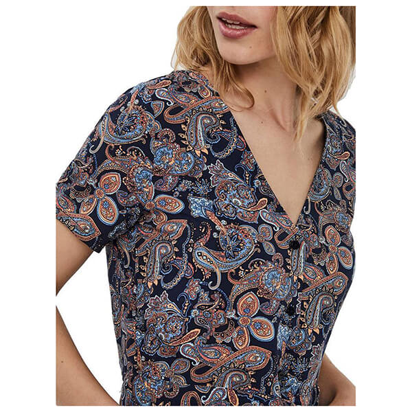 Vero Moda με εντυπωσιακό πολύχρωμο μοτίβο πάνω σε σκούρο μπλε φόντο.
