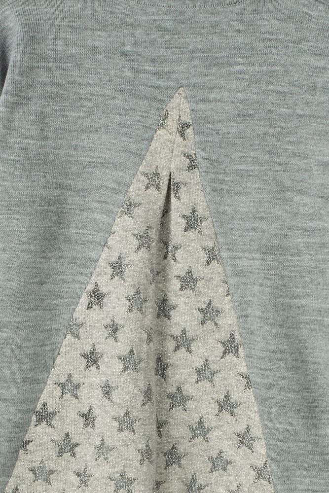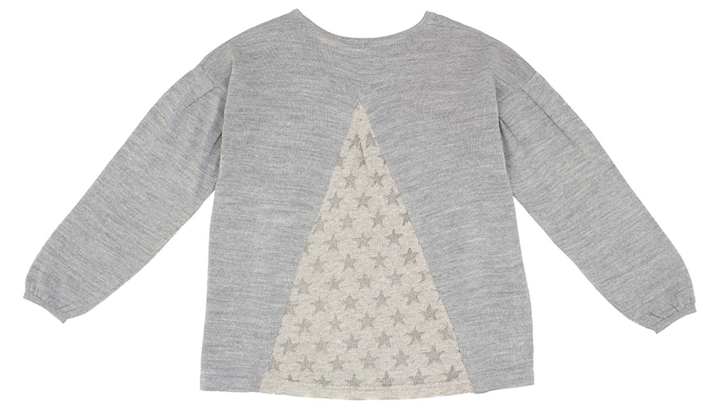 Πουλόβερ με την υπογραφή της εταιρείας Benetton. Είναι μακρυμάνικο με κανονική εφαρμογή και χαμόγελο λαιμόκοψη. Έχει ελαστικές μανσέτες για επιπλέον προστασία από το κρύο. Στο πίσω μέρος υπάρχει υφασμάτινη λεπτομέρεια με ημιδιαφανή αστέρια, διακοσμημένα με glitter. Company info