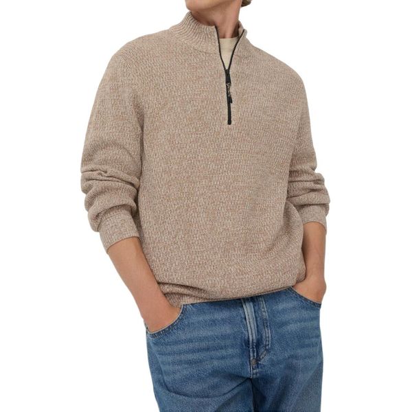 Πρόκειται για ένα πλεκτό πουλόβερ με κανονική εφαρμογή και υπερυψωμένο γιακά που κλείνει με φερμουάρ.