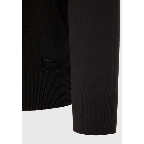 Πρόκειται για ένα μονόχρωμο πλεκτό πουλόβερ με κανονική γραμμή και ζιβάγκο λαιμόκοψη.