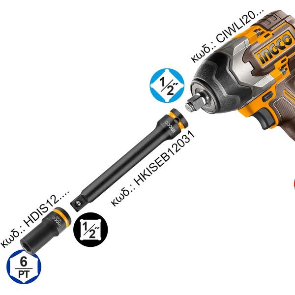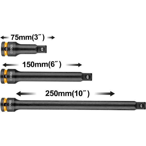 ΠΡΟΕΚΤΑΣΕΙΣ ΓΙΑ ΚΑΡΥΔΑΚΙΑ IMPACT-ΑΕΡΟΣ 1/2" ΣΕΤ 3 ΤΕΜ. (75-150-250MM) INGCO HKISEB12031 (TLS.391897)