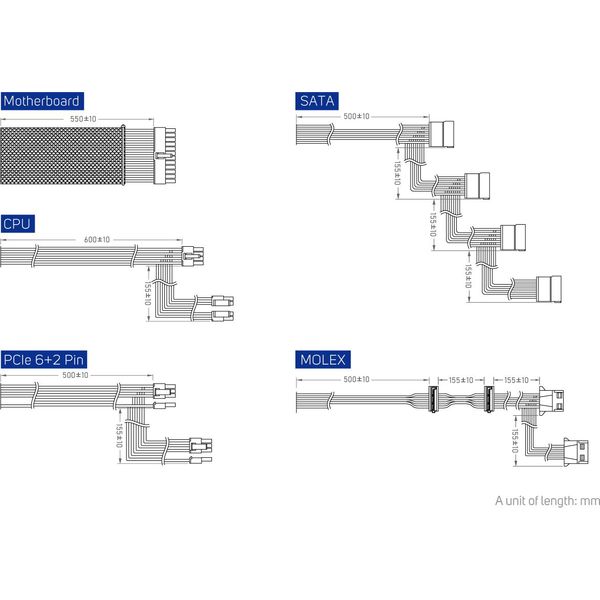 - Êáëùäéþóåéò: Ìáýñá flat êáëþäéá — 1x 24-pin ATX, 1x EPS 8-pin & 4+4-pin, 2x PCIe 6+2-pin, 6x SATA, 2x Molex.