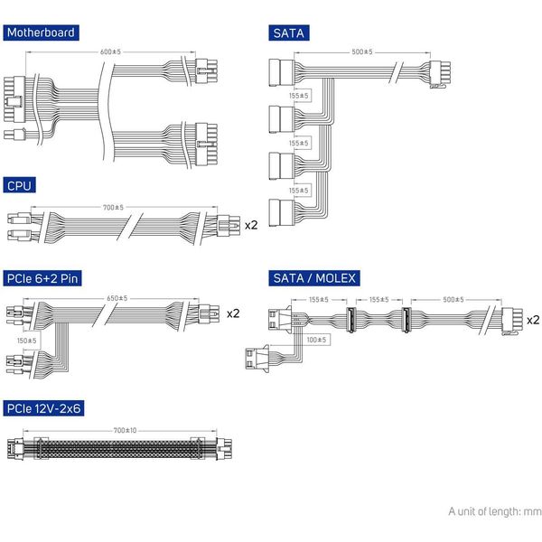 Συνδέσεις: 24-pin, CPU 8-pin & 4+4-pin, PCIe 6+2 (x4), PCIe 12V-2x6, SATA (x6), Molex (x2)