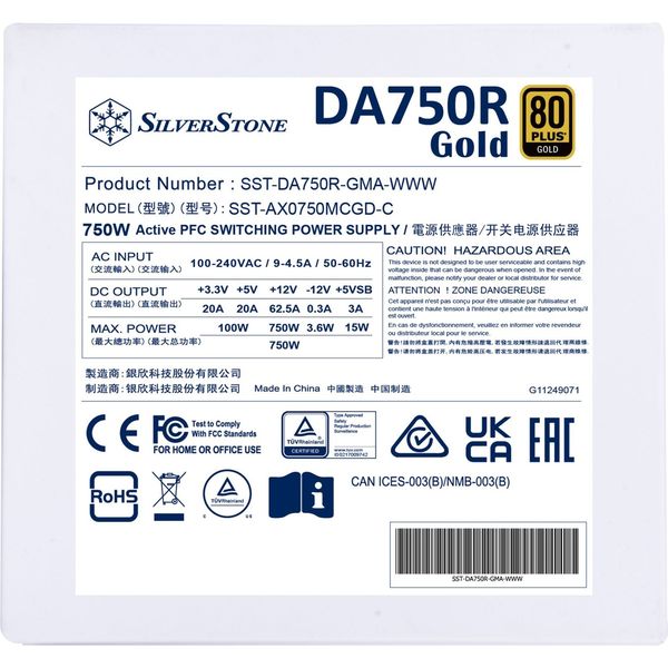 PSU SILVERSTONE DA750R-GMA 750W 80 PLUS GOLD FULL MODULAR WHITE (PER.619527)