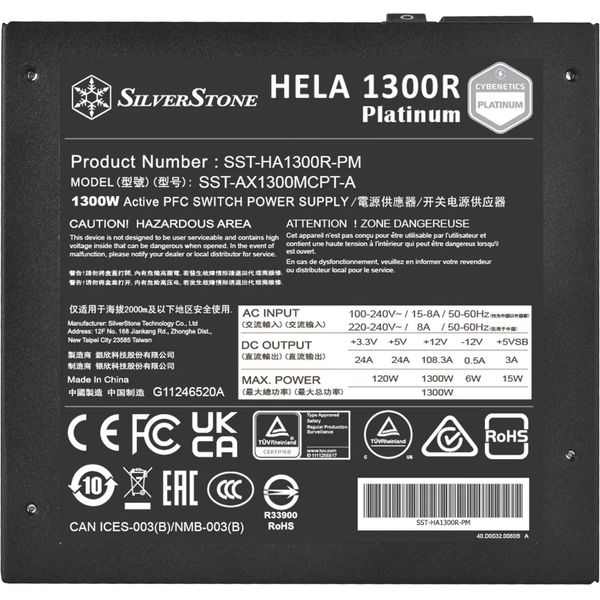 Το τροφοδοτικό SilverStone HELA 1300R Platinum παρέχει εξαιρετική απόδοση με πιστοποίηση Cybenetics Platinum και υποστήριξη για το 12VHPWR PCIe σύνδεσμο, καλύπτοντας τα πρότυπα ATX 3.0/3.1 και PCIe Gen 5. - Η πλήρως modular σχεδίαση και τα υπερβολικά ευέλικτα επίπεδα καλώδια επιτρέπουν εύκολη διαχείριση και οργανωμένη εγκατάσταση του συστήματος σας. - Υποστηρίζει 24/7 συνεχιζόμενη παροχή ισχύος με θερμοκρασία λειτουργίας μέχρι 50?, εξασφαλίζοντας αξιοπιστία και σταθερότητα σε απαιτητικές συνθήκες. - Ο 120mm FDB ανεμιστήρας λειτουργεί με χαμηλό θόρυβο και περιλαμβάνει ημιαυτόματη απενεργοποίηση και καθυστέρηση απενεργοποίησης για ακόμα πιο ήσυχη λειτουργία. - Όλοι οι πυκνωτές είναι ιαπωνικοί ηλεκτρολυτικοί, εξασφαλίζοντας μακροχρόνια αντοχή και υψηλή απόδοση. - Οι 180° γωνιακοί SATA σύνδεσμοι έχουν σχεδιαστεί για να επιτρέπουν την εύκολη τοποθέτηση σε στήβες σκληρών δίσκων.