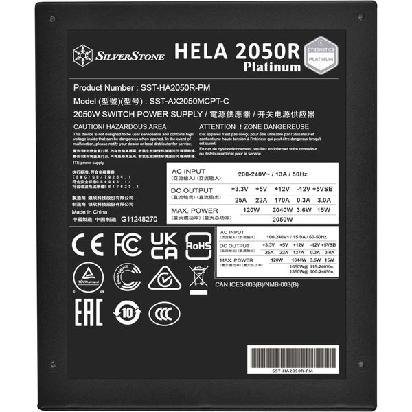 Το τροφοδοτικό SilverStone HELA 2050R Platinum παρέχει εξαιρετική απόδοση και αποδοτικότητα με πιστοποίηση Cybenetics Platinum και υποστήριξη για το 12VHPWR και 12V-2x6 PCIe σύνδεσμο, καλύπτοντας τα πρότυπα ATX 3.0/3.1 και PCIe Gen 5. - Η δυνατότητα παροχής συνεχούς ισχύος 2050W καθιστά αυτό το τροφοδοτικό ιδανικό για απαιτητικά συστήματα και συνεχόμενη λειτουργία 24/7, διασφαλίζοντας αξιοπιστία και σταθερότητα. - Η πλήρως modular σχεδίαση με τη νέα γενιά SilverStone 3ης γενιάς modular interface επιτρέπει εύκολη εγκατάσταση και οργάνωση. - Διαθέτει 2 x 12VHPWR/12V-2x6 συνδέσεις στη modular interface και περιλαμβάνει 3 x 12VHPWR/12V-2x6 καλώδια για ευκολία σύνδεσης. - Ο 135mm ανεμιστήρας διπλού ρουλεμάν λειτουργεί αθόρυβα με τη λειτουργία ημιαυτόματης απενεργοποίησης, εξασφαλίζοντας μέγιστη απόδοση ψύξης μόνο όταν απαιτείται.