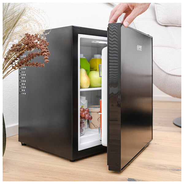 Μίνι ψυγείο 34 λίτρων, ιδανικό για ξενοδοχεία, ενοικιαζόμενα δωμάτια, γραφεία ή άλλους μικρούς χώρους. Mε επίπεδο θορύβου 22dB, ενώ χάρη στην τεχνολογία ψύξης Peltier λειτουργεί χωρίς εκπομπές θορύβου και κραδασμούς. Διαθέτει εσωτερικό φωτισμό LED εξοικονόμησης ενέργειας και επιφάνεια ανθεκτική στη βρωμιά, για εύκολο και γρήγορο καθαρισμό. Είναι ιδανικό για εγκατάσταση σε μικρότερα δωμάτια, για να έχετε πάντα δίπλα σας ροφήματα και σνακ, τα οποία διατηρούνται συνεχώς δροσερά με απόδοση ψύξης 8°C σε θερμοκρασία δωματίου 25°C. Ανάλογα τις ανάγκες σας, μπορείτε να αφαιρέσετε τα 4 ράφια και τα 2 ξεχωριστά διαμερίσματα πόρτας ή να τα τοποθετήσετε σε διαφορετικό ύψος. Λειτουργεί με κλειδαριά, με 2 κλειδιά στη διάθεσή σας και η πλευρά του μεντεσέ της πόρτας μπορεί εύκολα να αλλάξει από τα δεξιά προς τα αριστερά, ώστε να διασφαλίζεται πάντα το άνοιγμα χωρίς εμπόδια.
