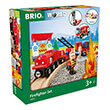 BRIO στην κατηγορία ΞΥΛΙΝΑ ΟΙΚΟΛΟΓΙΚΑ ΠΑΙΧΝΙΔΙΑ Οδήγησε προς τη φωτιά, αποσύνδεσε το βαγόνι δεξαμενής νερού και χρησιμοποίησε τη μάνικα για να σβήσεις την πυρκαγιά.