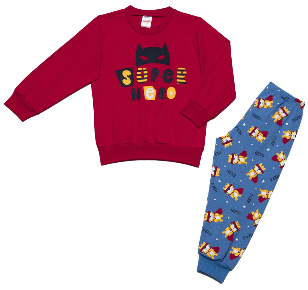 Πυτζαμάκια από την εταιρεία Minerva. Το σετ αποτελείται από:Μακρυμάνικη μπλούζα με στρογγυλή ελαστική λαιμόκοψη και ελαστικές μανσέτες. Στο μπροστινό μέρος υπάρχει στάμπα εξαιρετικής ποιότητας που μία μάσκα και το logo Super Hero.Παντελόνι με μαλακό λάστιχο στη μέση και ελαστικά μπατζάκια, διακοσμημένο με μοτίβο από στάμπες που απεικονίζουν ένα αρκουδάκι σούπερ ήρωα και το logo Hero.Η ύφανσή τους είναι από 100% βαμβάκι.Ιδανικές για καθημερινή χρήση και ανθεκτικές στα συχνά πλυσίματα.Προσφέρουν τέλεια εφαρμογή. Company Info: Η εταιρεία Minerva, η μεγαλύτερη βιομηχανία παραγωγής παιδικών πυτζαμών και εσωρούχων μετράει 70 χρόνια παρουσίας στον χώρο. Η παραγωγή ποιοτικών προϊόντων σε προσιτές τιμές, υπήρξε πάντα η βασική αρχή της. Τα εξαιρετικής ποιότητας υλικά της και η διαχρονικότητα των σχεδίων της, είναι που κρατούν πιστό το κοινό της. Είδος>ΠυτζάμεςΥλικό κατασκευής>Σύνθεση>100% ΒαμβάκιΛοιπά χαρακτηριστικά>Profile>Προτεινόμενα αθλήματα>Θερμοκρασία πλύσης>Ακολουθείστε τις οδηγίες που αναγράφονται στο ειδικό ταμπελακιΤεχνολογία κατασκευής>Χρώμα>Μπλε ρουά - ΚόκκινοΝούμερο παπουτσιού>>>Βαθμολογία>Ταξινόμηση>Θέση Ταξινόμησης>> Τα προϊόντα των κατηγοριών Αθλητικά, Βρεφικά - Παιδικά, Ενδυση Υπόδηση πωλούνται από την εταιρεία Electronic Shopping Greece ΑΕ σε συνεργασία με το site Plus4u.gr. Η υποστήριξη μετά την πώληση και οι εγγυήσεις των προϊόντων αυτών παρέχονται από την ίδια εταιρεία μέσα από το site www.plus4u.gr και το τηλεφωνικό κέντρο 211 2000 700. Μπορείτε να συνδυάσετε τα προϊόντα αυτά με τα υπόλοιπα προϊόντα του e-shop.gr και να τα παραλάβετε μαζί ώστε να μειώσετε τα έξοδα αποστολής. Μπορείτε επίσης να παραλάβετε από οποιοδήποτε eshop point με μηδενικά έξοδα αποστολής ανεξαρτήτως ύψους παραγγελίας!