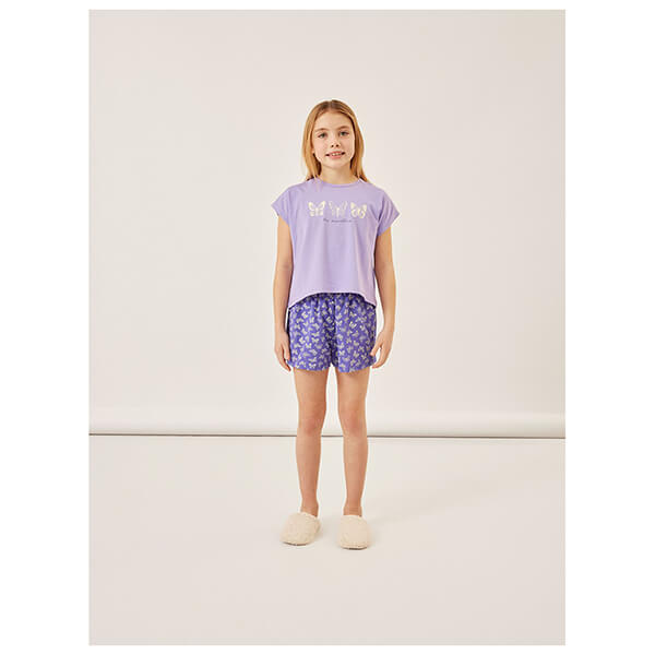 • Σορτς με μαλακό λάστιχο στη μέση, διακοσμημένο σε όλη του την επιφάνεια με μοτίβο που απεικονίζει πεταλούδες.