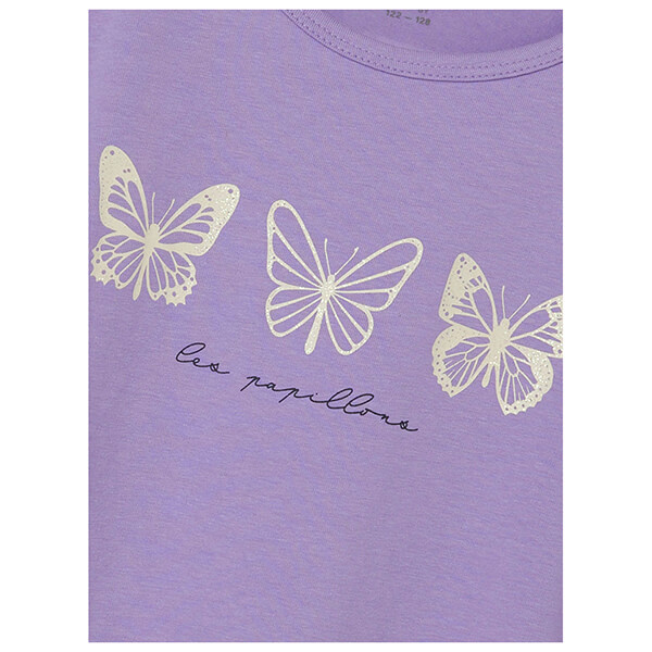 • Κοντομάννικη μπλούζα με στρογγυλή λαιμόκοψη, διακοσμημένη στο μπροστινό μέρος με στάμπα που απεικονίζει 3 πεταλούδες.
