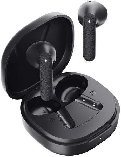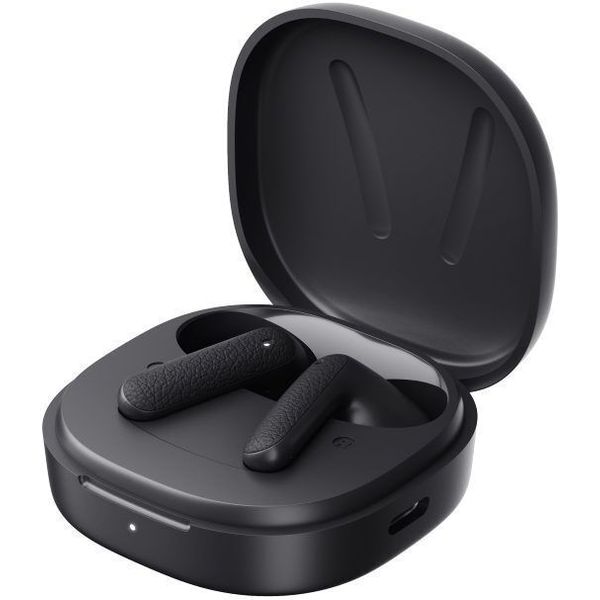 QCY AIR DARK GREY SEMI-EAR TWS EARBUDS, QUAD MIC ENC MULTI-POINT CONNECTION, LEATHER GRAIN CASE (TEL.234953)