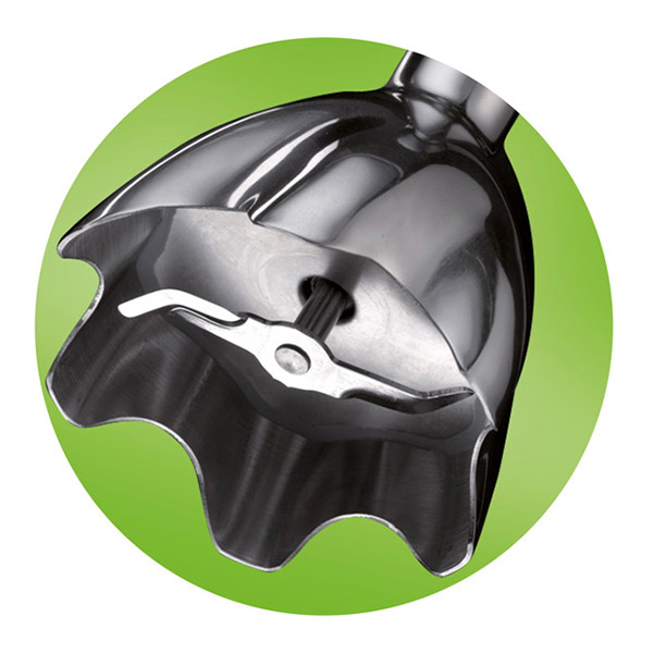 Ανοξείδωτη ράβδος με μοναδικό σχήμα καμπάνας για πολτοποίηση χωρίς πιτσίλισμα. Τέλειο αποτέλεσμα, χωρίς να λερώνεις την κουζίνα σου.