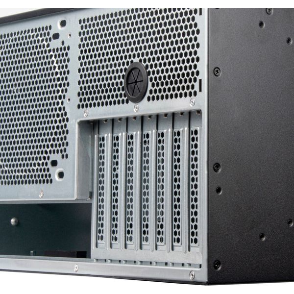 Η SilverStone RM51 είναι μια εξαιρετική λύση 5U rackmount για server, με κορυφαία απόδοση ψύξης και δυνατότητες επέκτασης για απαιτητικά συστήματα. - Υποστηρίζει μητρικές SSI-EEB, ιδανική για ισχυρά και επαγγελματικά συστήματα. - Περιλαμβάνει δύο ανεμιστήρες Air Penetrator 184i PRO για εξαιρετική εισαγωγή αέρα και βελτιωμένη ψύξη, εξασφαλίζοντας την ιδανική θερμοκρασία λειτουργίας του συστήματος. - Υποστηρίζει ψυγεία liquid cooling 360mm, παρέχοντας ακόμα μεγαλύτερη απόδοση ψύξης για συστήματα με υψηλές απαιτήσεις. - Διαθέτει οκτώ υποδοχές PCI για την εύκολη σύνδεση καρτών επέκτασης και άλλων περιφερειακών. - Η θήκη περιλαμβάνει τρύπες τοποθέτησης για γρήγορη και εύκολη εγκατάσταση με rails (τα rails πωλούνται ξεχωριστά). - Η εμπρόσθια θύρα I/O περιλαμβάνει μία θύρα USB Type-C για σύγχρονη και γρήγορη σύνδεση εξωτερικών συσκευών. - Η θήκη μπορεί να τοποθετηθεί είτε κάθετα είτε οριζόντια για μεγαλύτερη ευελιξία στην εγκατάσταση του συστήματος. - Αν δεν χρησιμοποιηθεί ο δίσκος 3.5" στη θήκη, μπορεί να εγκατασταθεί δευτερεύον τροφοδοτικό για επιπλέον ενέργεια και ευελιξία.