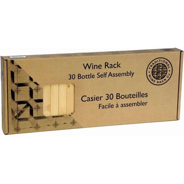 Σύστημα αποθήκευσης 30 φιαλών κρασιού από ξύλο και γαλβανιζέ μεταλλικούς συνδέσμους. Το συγκεκριμένο σχέδιο προέρχεται από το μακρινό 1703 και ως και σήμερα αναγνωρίζεται ως ο καλύτερος τρόπος αποθήκευσης κρασιών. Είναι ιδανικό για τοποθέτηση σε οποιοδήποτε χώρο και μπορεί να επεκταθεί ενώνοντας δύο ή περισσότερες ραφιέρες. Μια παραδοσιακή ραφιέρα φιαλών για την συλλογή σας. Κατασκευάζεται στην Αγγλία στο φυσικό χρώμα του ξύλου, σε διαστάσεις 61 x 42 x 23 cm με χωρητικότητα έως και 30 φιάλες. Μπορούν να φιλοξενήσουν και σαμπάνιες ή άλλες φιάλες ασυνήθιστων διαστάσεων.