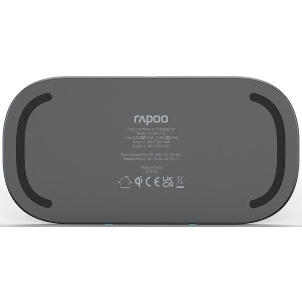RAPOO WIRELESS DUAL CHARGER XC260 QI FOR SMARTPHONE, BLACK, 2X7.5/10W