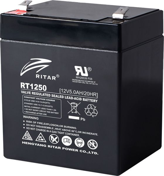 RITAR LEAD ACID BATTERY (RT1250) AGM 12V / 5AH - 90 / 70 / 101MM TERMINAL 1