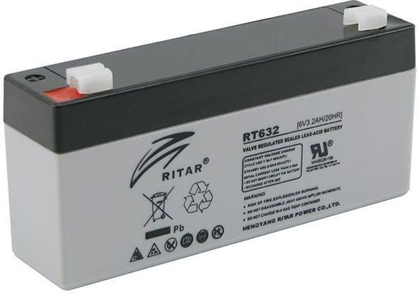 RITAR LEAD ACID BATTERY (RT632) AGM 6V / 3.2AH - 134 / 34 / 60 MM TERMINAL1