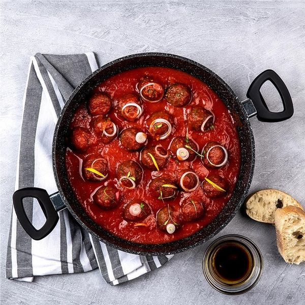 - Διπλή αντικολλητική επίστρωση PFLUON COOKMARK (μαύρο μάρμαρο) για υγιεινό μαγείρεμα, αντοχή στη θερμότητα, ενώ επίσης είναι φιλική προς τον χρήστη και το περιβάλλον.