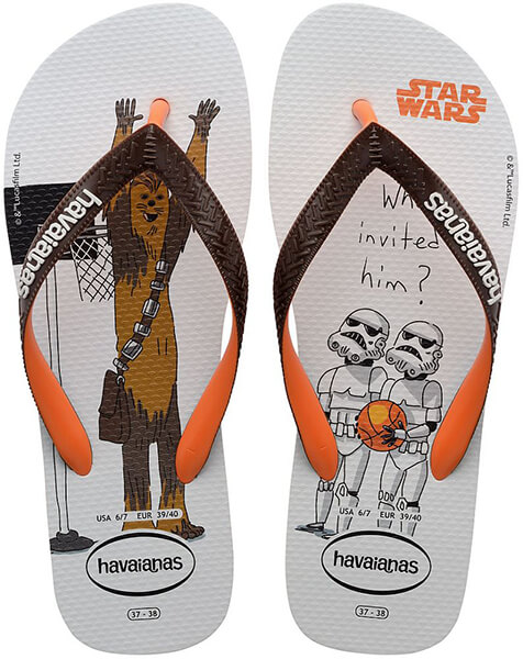 Ήρθε η ώρα για τα droids, τον Kylo Ren και τους υπόλοιπους ήρωες του Star Wars να υποκλιθούν στα πόδια σας. Οι σαγιονάρες Havaianas Star Wars δεν είναι απλά μέρος μίας συλλεκτικής σειράς, είναι ένας καθημερινός σύντροφος στις καλοκαιρινές σας περιπέτειες. Στο συγκεκριμένο μοντέλο, οι Stormtroopers δυσκολεύονται να βάλουν καλάθι απέναντι στον Chewbacca! Οι σαγιονάρες Havaianas είναι βολικές, φανταχτερές και προσδίδουν στιλ σε όποιον τις επιλέγει. Κατασκευάζονται στη Βραζιλία όπου η καλοκαιρινή κομψότητα είναι αναπόσπαστο στοιχείο της κουλτούρας. Έρχονται σε πολλά σχέδια και χρώματα. Το 1ο ζευγάρι Havaianas δημιουργήθηκε το 1962, εμπνευσμένο από τις Zori, παραδοσιακές Ιαπωνικές σαγιονάρες φτιαγμένες από υφασμάτινο λουρί και σόλα από άχυρο ρυζιού. Για τον λόγο αυτό, η τεχνοτροπία του πέλματος της Havaianas, θυμίζει ρυζόκοκκο! Είδος>ΣαγιονάραΠροτεινόμενα αθλήματα>BeachwearΥλικό κατασκευής>Λουράκια: PVCΣόλα: 100% Καουτσούκ (Rubber)Λοιπά χαρακτηριστικά>UnisexΑνάλαφρηΑντιολισθητικήΑδιάβροχηΑνθεκτικήΎψος σόλας: 1 cmΧρώμα>Λευκό / Πορτοκαλί / Μαύρο Τα προϊόντα των κατηγοριών Αθλητικά, Βρεφικά - Παιδικά, Ενδυση Υπόδηση πωλούνται από την εταιρεία Electronic Shopping Greece ΑΕ σε συνεργασία με το site Plus4u.gr. Η υποστήριξη μετά την πώληση και οι εγγυήσεις των προϊόντων αυτών παρέχονται από την ίδια εταιρεία μέσα από το site www.plus4u.gr και το τηλεφωνικό κέντρο 211 2000 700. Μπορείτε να συνδυάσετε τα προϊόντα αυτά με τα υπόλοιπα προϊόντα του e-shop.gr και να τα παραλάβετε μαζί ώστε να μειώσετε τα έξοδα αποστολής. Μπορείτε επίσης να παραλάβετε από οποιοδήποτε eshop point με μηδενικά έξοδα αποστολής ανεξαρτήτως ύψους παραγγελίας!