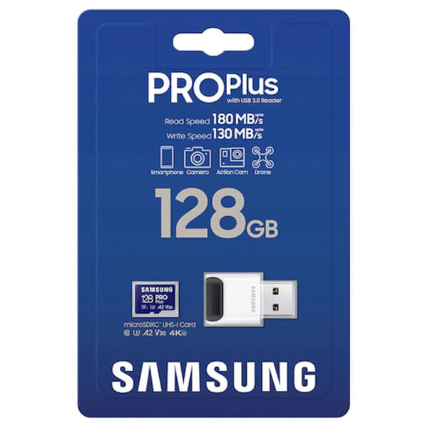 Απόδοση και αξιοπιστία στην οποία μπορείτε να βασίζεστε με τη μνήμη flash Samsung PRO Plus. -Οι υπερφορτισμένες ταχύτητες εγγραφής και η αξιόπιστη απόδοση σάς επιτρέπουν να τραβάτε απρόσκοπτα βίντεο 4K στο συμβατό σας τηλέφωνο ή drone, ενώ ο εκτεταμένος αποθηκευτικός χώρος σάς δίνει την ελευθερία να παίζετε πιο υψηλής απόδοσης, εντατικά παιχνίδια στο tablet ή στη συσκευή παιχνιδιού σας. -Εκπληκτικά γρήγορο U3, ταχύτητες ανάγνωσης/εγγραφής βαθμολογικής κατηγορίας 10, σάς επιτρέπουν να τραβάτε περισσότερες φωτογραφίες πιο γρήγορα και να μεταφέρετε με ευκολία. Τα βίντεο 4K φαίνονται πιο ευκρινή με UHS-I, ονομαστική ταχύτητα V30 και αξιολόγηση A2, που παρέχει περισσότερο χώρο αποθήκευσης για εφαρμογές και παιχνίδια. -Η τεράστια χωρητικότητα των 256 GB σάς προσφέρει άφθονο αποθηκευτικό χώρο. Τραβήξτε όσες μεγάλες λήψεις και φωτογραφίες υψηλής ανάλυσης7 θέλετε ή φορτώστε τις εφαρμογές και τα πολυμέσα που πρέπει να έχετε. -Είστε πλήρως προστατευμένοι. Η PRO Plus παρέχει προστασία από νερό, θερμοκρασία, ακτίνες Χ, μαγνήτες και προστασία φθοράς. Οι εμπειρίες σας είναι αναντικατάστατες και αξίζει αξιόπιστη αποθήκευση, που υποστηρίζεται από περιορισμένη εγγύηση 10 ετών. • Τύπος: microSDXC Memory Card. • Χωρητικότητα: 128 GB. • Ταχύτητα ανάγνωσης: έως 180MB/s. • Ταχύτητα εγγραφής: έως 130MB/s. • Speed Class: U3. • Interface: UHS-I. • Συμβατότητα: Κινητό τηλέφωνο, Tablet, Action Camera, Κάμερα 360°, Drone, Laptop, Κονσόλα παιχνιδιών κ.λπ. • Αξεσουάρ: USB reader. • Τάση λειτουργίας: 2, 7-3, 6V. • Θερμοκρασία λειτουργίας: -25? έως 85?. • Θερμοκρασία αποθήκευσης: -40? έως 85?. • Αντοχή: 10.000 κύκλοι. • Πιστοποιήσεις: EMC CE(UKCA)/FCC/VCCI/RCM. • Μέγεθος: 15 x 11 x 1 mm. • Βάρος: 25 g. • Εγγύηση: 10 χρόνια. DOA 7 ημερών