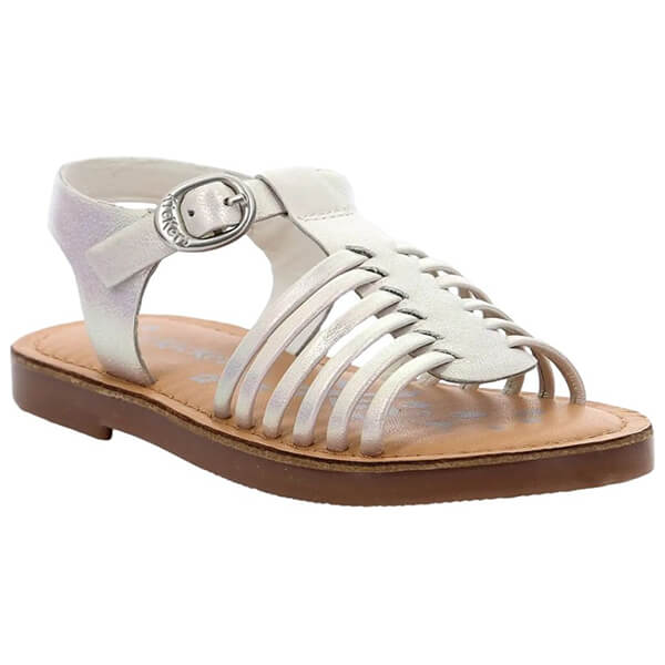 Παιδικά σανδάλια της μάρκας Kickers σε λευκό ιριδίζον χρώμα.