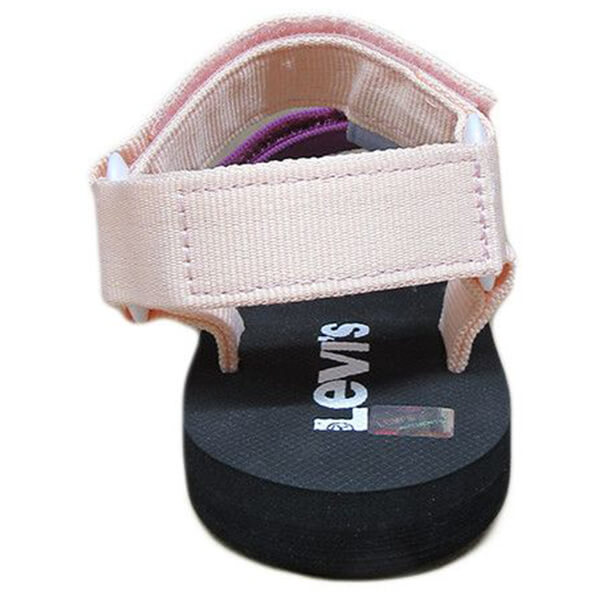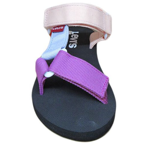 Κατασκευασμένα εξωτερικά από υφασμάτινα λουράκια.Διαθέτουν αντιολισθητική σόλα από καουτσούκ σε μαύρο χρώμα.Κλείνουν με τρία velcro (σκρατς) στο μπροστινό μέρος, στο πίσω και στον αστράγαλο για εύκολο φόρεμα και βγάλσιμο.Σε σομόν, μωβ και γαλάζιο χρώμα, με λεπτομέρειες από πλαστικά τρίγωνα.Στο πλάι υπάρχει υφασμάτινο patch με το logo της Levi's.
