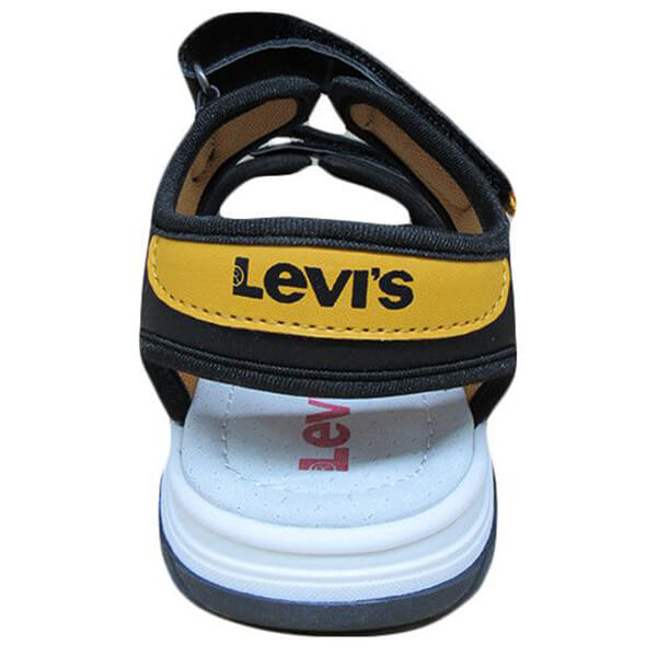 Κατασκευασμένα εξωτερικά από δέρμα με υφασμάτινες λεπτομέρειες και δερμάτινο πάτο εσωτερικά.Διαθέτουν αντιολισθητική σόλα από καουτσούκ.Κλείνουν με δύο velcro (σκρατς) για εύκολο φόρεμα και βγάλσιμο.Σε μαύρο χρώμα με κίτρινες λεπτομέρειες.Στο πλάι υπάρχει υφασμάτινο patch με το logo της Levi's, ενώ στο πίσω μέρος υπάρχει ανάγλυφη στάμπα με το logo της εταιρείας.