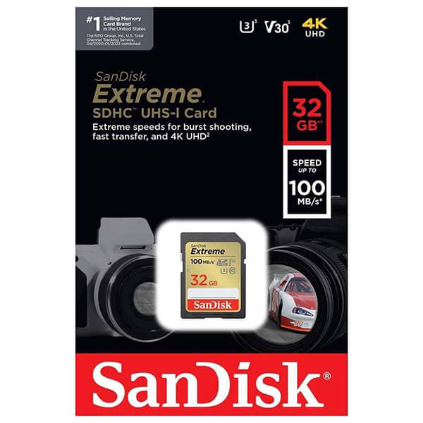 SANDISK EXTREME 32GB SDHC UHS-I CARD U3 V30 SDSDXVT-032G-GNCIN