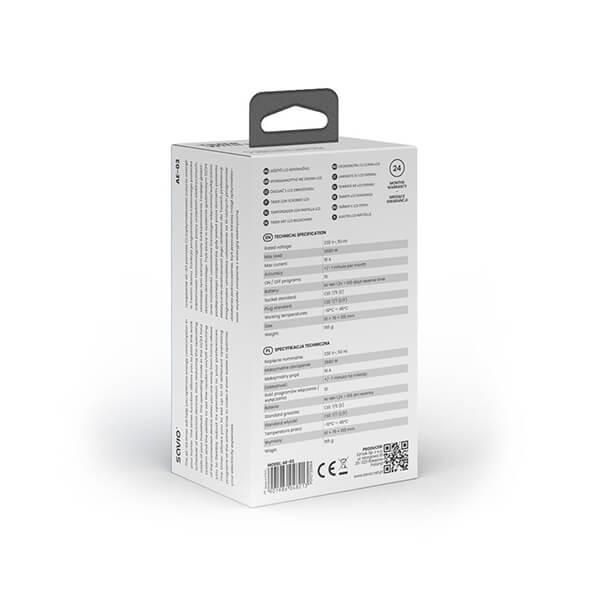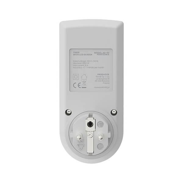 Ο χρονοδιακόπτης με οθόνη LCD, AE-03, είναι μια προηγμένη συσκευή που θα σας βοηθήσει να βελτιστοποιήσετε την κατανάλωση ενέργειας στο σπίτι σας. Το AE-03 σάς επιτρέπει να διαμορφώσετε το πρόγραμμα λειτουργίας των ηλεκτρικών συσκευών, γεγονός που μειώνει το λειτουργικό κόστος του νοικοκυριού σας. Προσφέρει λειτουργία 12/24 ωρών και δυνατότητα ρύθμισης τυχαίας ενεργοποίησης/απενεργοποίησης συνδεδεμένων συσκευών. Αυτό σας επιτρέπει να προσαρμόσετε ευέλικτα τη λειτουργία των συσκευών στις προτιμήσεις σας, ειδικά όταν λείπετε από το σπίτι.
