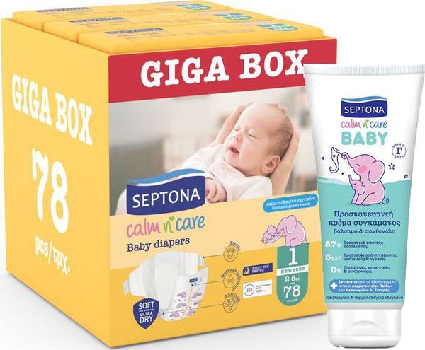 SEPTONA CALM N' CARE ÐÁÍÅÓ NO1 (2-5KG) 78 ÔÅÌ GIGA BOX + ÄÙÑÏ SEPTONA BABY ÊÑÅÌÁ ÓÕÃÊÁÌÁÔÏÓ 100ML (ANA.PNS0844)