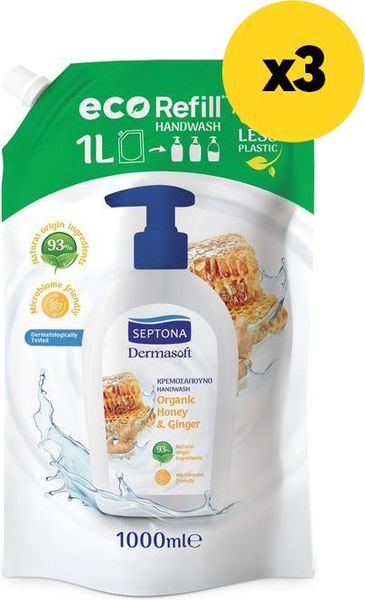 SEPTONA DERMASOFT ΚΡΕΜΟΣΑΠΟΥΝΟ HONEY & GINGER 1000ML X3