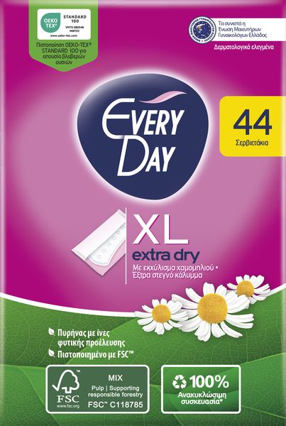 Αρχική > Προσωπική φροντίδα > Σερβιέτες > ΣΕΡΒΙΕΤΑΚΙΑ EVERYDAY EXTRA DRY XLARGE ΜΕ ΕΚΧΥΛΙΣΜΑ ΧΑΜΟΜΗΛΙΟΥ 44TMX