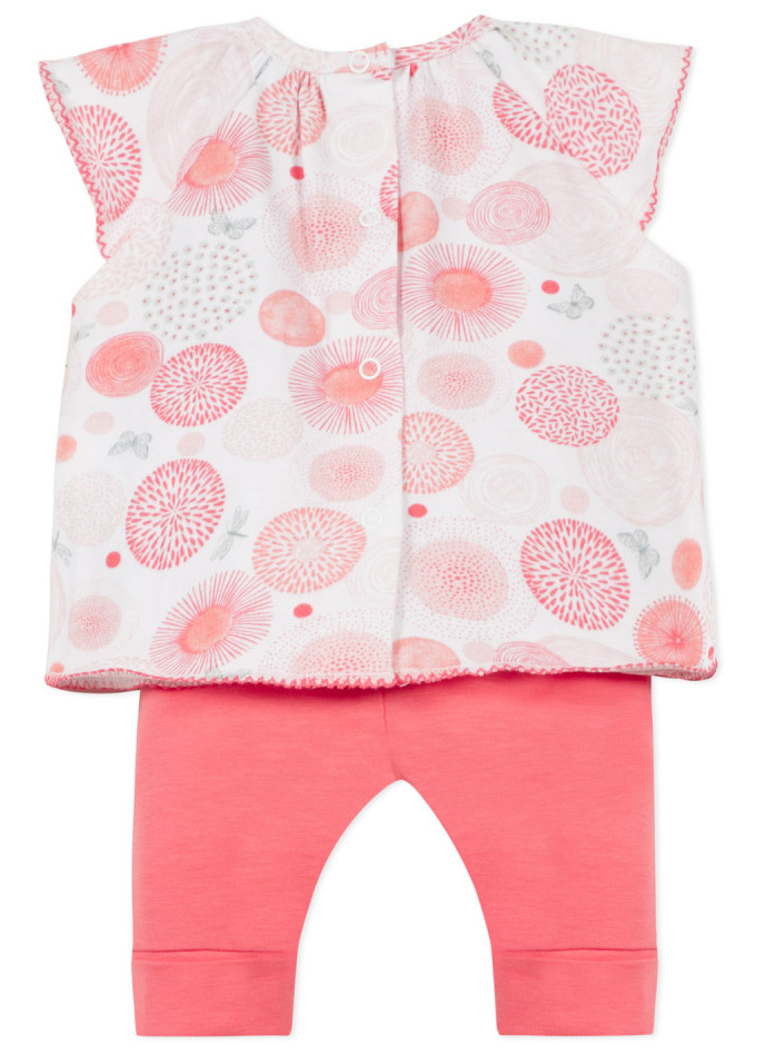 Σε όλη της την επιφάνεια υπάρχει μοτίβο σε κοραλί αποχρώσεις που απεικονίζει κύκλους και πεταλούδες.