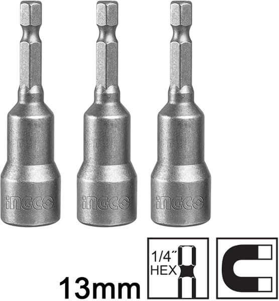 ΣΕΤ 3 ΤΕΜ. ΚΑΡΥΔΑΚΙΑ 1/4" ΜΑΓΝΗΤΙΚΑ 13MM INGCO AMN1331 (TLS.390663)