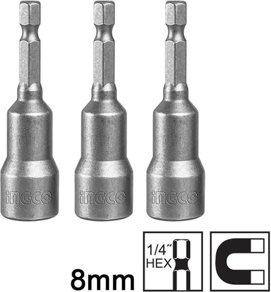 ΣΕΤ 3 ΤΕΜ. ΚΑΡΥΔΑΚΙΑ 1/4" ΜΑΓΝΗΤΙΚΑ 8MM INGCO AMN0831 (TLS.390664)