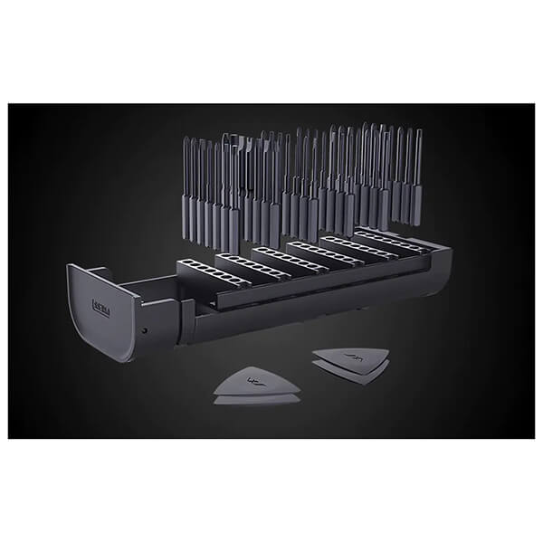 Το σετ κατσαβιδιών JM-GNT60 περιλαμβάνει 42 μύτες από υψηλής ποιότητας χάλυβα S2. Επίσης περιλαμβάνει τσιμπιδάκια, card key που θα βοηθήσουν κατά τη διάρκεια της εργασίας. -Για την κατασκευή όλων των εξαρτημάτων του κιτ έχουν χρησιμοποιηθεί ανθεκτικά και υψηλής ποιότητας υλικά, τα οποία εγγυώνται το υψηλότερο επίπεδο ασφάλειας και άνεσης κατά τη χρήση. Οι μύτεςς (εκτός από το H2.5) έχουν κατασκευαστεί από ειδικό κράμα χάλυβα S2, το οποίο χαρακτηρίζεται από απίστευτη αντοχή. -Το σετ περιλαμβάνει 42 μύτες και συνολικά 12 τύπους κατσαβιδιών όπως επίπεδα κατσαβίδια, Phillips, τριγωνικά ή σε σχήμα Y. -Η πρακτική θήκη από κράμα αλουμινίου σας επιτρέπει να αποθηκεύετε όλα τα εξαρτήματα σε ένα μέρος. Είναι πλήρως ανθεκτικό στη διάβρωση. Επιπλέον, στο εσωτερικό της θήκης υπάρχει ειδικός αποθηκευτικός χώρος για βίδες για αποφυγή απώλειας τους κατά την αποσυναρμολόγηση. -Ο μικρός και ελαφρύς σχεδιασμός της θήκης δεν καταλαμβάνει πολύ χώρο, ώστε να μπορείτε να πάρετε το σετ μαζί σας όπου θέλετε. -Οι θέσεις των μυτών έχουν μαγνητική απορρόφηση για να επιτρέπουν να μένουν σταθερά στη θέση τους.