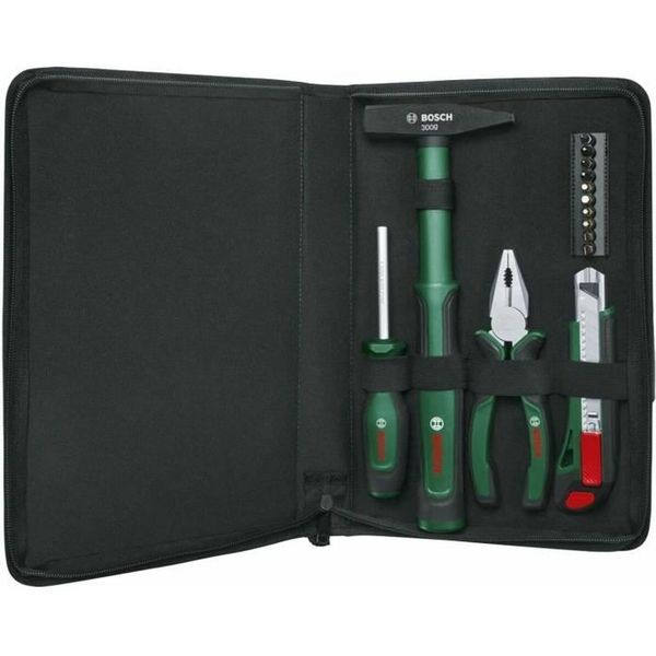 • Περιεχόμενο σετ: Πένσα, σφυρί μηχανικού 300 g, μαχαίρι με σπαστή λάμα, κατσαβίδι γενικής χρήσης, 10 κατσαβιδόλαμες