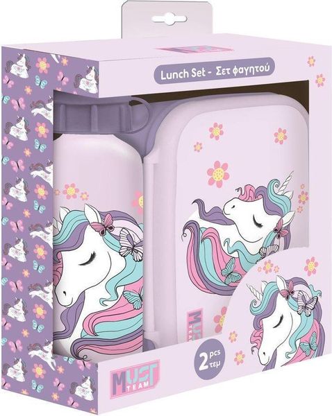 Το Σετ Φαγητού Must Team Lovely Unicorn περιέχει 1 φαγητοδοχείο και 1 παγούρι αλουμινίου για να απολαμβάνουν τα παιδιά κάθε στιγμή το σπιτικό τους γεύμα στο σχολείο, στην παιδική χαρά και στη βόλτα! Το φαγητοδοχείο ξεχωρίζει για το αεροστεγές κλείσιμο, ενώ το παγούρι ανοίγει-κλείνει εύκολα και εξασφαλίζει την προστασία από διαρροές.