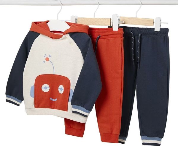 Σετ φόρμας φούτερ από την εταιρεία Mayoral με σχέδιο ρομπότ, σε πορτοκαλί και σκούρο μπλε χρώμα. Το σετ περιλαμβάνει: Ένα φούτερ σε πορτοκαλί χρώμα με μπλε και λευκές λεπτομέρειες. Διαθέτει κουκούλα, ελαστικές μανσέτες και τελείωμα για καλύτερη εφαρμογή και κλεινει με κουμπιά στο πάνω μέρος.Ένα παντελόνι φόρμας σε χρώμα πορτοκαλί με μαλακό λάστιχο στη μέση και κορδόνι περίσφιξής. Διαθέτει ελαστικά μπατζάκια στο τελείωμα.Ένα παντελόνι φόρμας σε σκούρο μπλε χρώμα με μαλακό λάστιχο στη μέση και κορδόνι περίσφιξης. Διαθέτει ελαστικά μπατζάκια στο τελείωμα. Company info Η Mayoral είναι η ηγετική μάρκα στη παιδική ένδυση στην Ιβηρική χερσόνησο και μια από τις πιο σημαντικές εταιρείες στη παιδική ένδυση στην Ευρώπη. Η ομάδα της Mayoral ασχολείται με τον σχεδιασμό, την παραγωγή ,το marketing και την διανομή της παιδικής μόδας σε πάνω από 100 χώρες μέσω ενός δικτύου πωλήσεων που αποτελείται από 20 θυγατρικές εταιρείες, 250 εμπορικούς αντιπρόσωπους , 245 καταστήματα Mayoral και πάνω από 10.000 σημεία πώλησης ανά τον κόσμο.Είδος>Σετ φόρμας (φούτερ & 2 παντελόνια)Σύνθεση> 60% Βαμβάκι - 39% Πολυεστέρας - 1% Ελαστομερής πολυουρεθάνηΛοιπά χαρακτηριστικά>Ακολουθήστε τις οδηγίες πλύσης που αναγράφονται στο ειδικό ταμπελάκιΧρώμα>Πορτοκαλί Τα προϊόντα των κατηγοριών Αθλητικά, Βρεφικά - Παιδικά, Ενδυση Υπόδηση πωλούνται από την εταιρεία Electronic Shopping Greece ΑΕ σε συνεργασία με το site Plus4u.gr. Η υποστήριξη μετά την πώληση και οι εγγυήσεις των προϊόντων αυτών παρέχονται από την ίδια εταιρεία μέσα από το site www.plus4u.gr και το τηλεφωνικό κέντρο 211 2000 700. Μπορείτε να συνδυάσετε τα προϊόντα αυτά με τα υπόλοιπα προϊόντα του e-shop.gr και να τα παραλάβετε μαζί ώστε να μειώσετε τα έξοδα αποστολής. Μπορείτε επίσης να παραλάβετε από οποιοδήποτε eshop point με μηδενικά έξοδα αποστολής ανεξαρτήτως ύψους παραγγελίας!