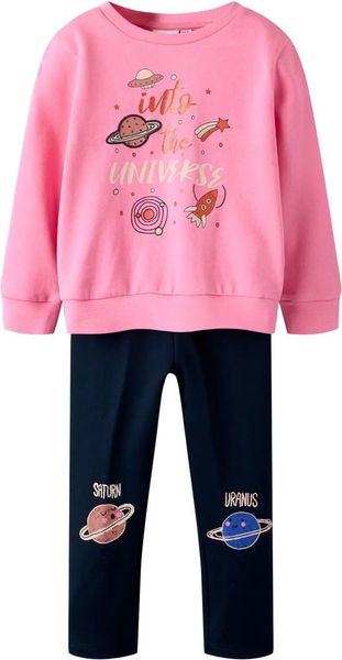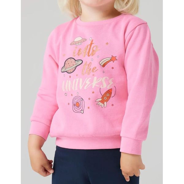 • Μμακρυμάνικο φούτερ σε ροζ χρώμα με πολύχρωμη στάμπα με σχέδιο διάστημα με το logo