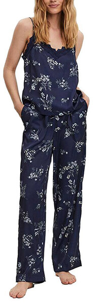 Σετ πυτζάμες με την υπογραφή της Vero Moda με floral μοτίβο σε όλη της την επιφάνεια, σε σκούρο μπλε χρώμα.