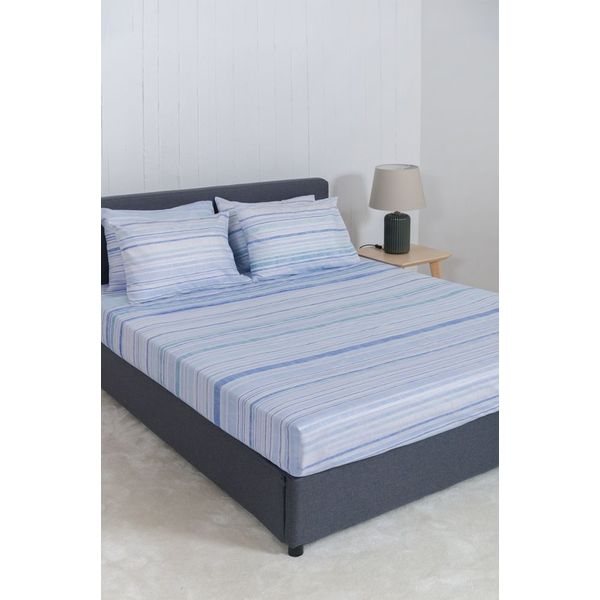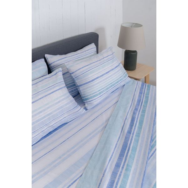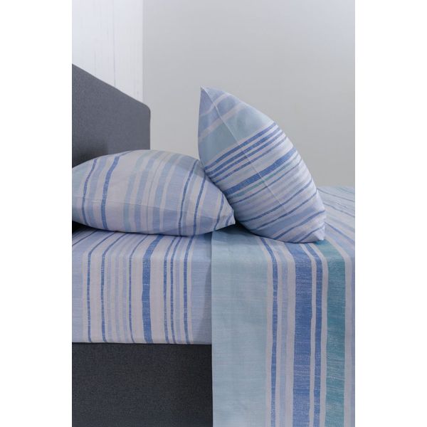 Σετ σεντόνια για υπέρδιπλο κρεβάτι σε μοντέρνο σχεδιασμό, από την εταιρεία Naf-Naf. Σε ριγέ σχεδιασμό με αποχρώσεις του μπλε της θάλασσας.