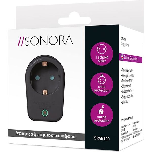 ΣΕΤ SONORA SPAB100 ΑΝΤΑΠΤΟΡΑΣ ΡΕΥΜΑΤΟΣ ΜΕ ΠΡΟΣΤΑΣΙΑ ΥΠΕΡΤΑΣΗΣ 2ΤΜΧ