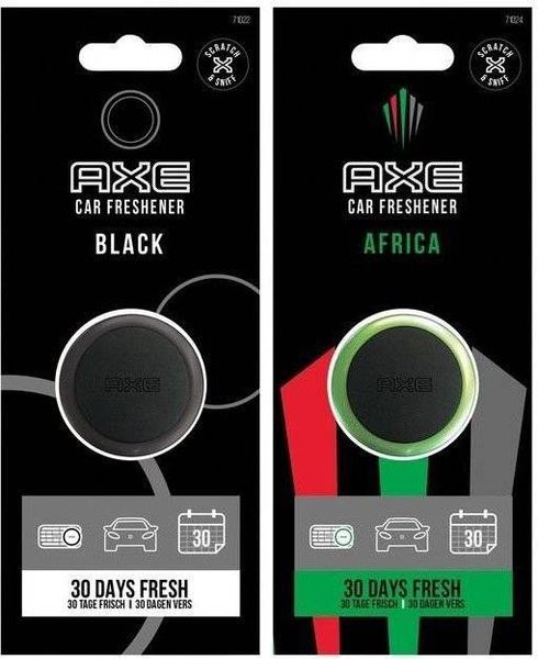 Ανανεώστε το αυτοκίνητο με τα γνωστά αυθεντικά αρώματα Axe. Το αρωματικό αυτοκινήτου Axe Mini Vent απλώνει ένα απολαυστικό εξωτικό μείγμα ζεστών αφρικανικών βοτάνων και αρωμάτων. Ενώ το αρωματικό αυτοκινήτου Axe Mini Vent σκορπίζει υπέροχες μυρωδιές από περγαμόντο, δεντρολίβανο και ξύλο κέδρου. Το αρωματικό μπορεί να στερεωθεί στον αεραγωγό με το κλιπ στερέωσης και λειτουργεί έως και 30 ημέρες.