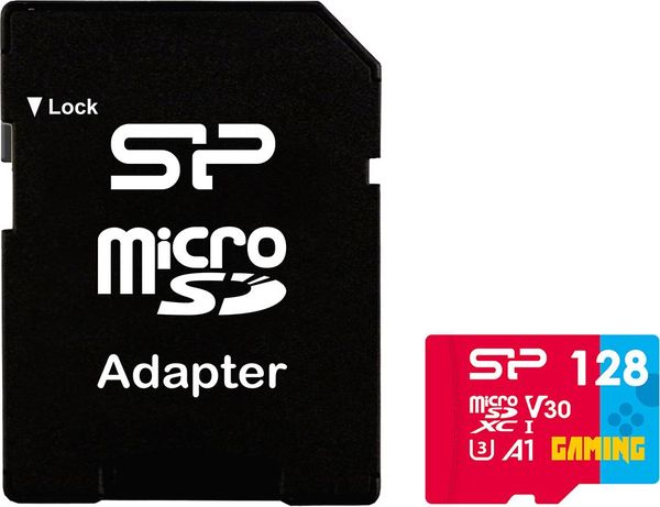 silicon power superior 128gb gaming micro sdxc u3 v30 a1 adapter sp128gbstxdv3v1nsp photo