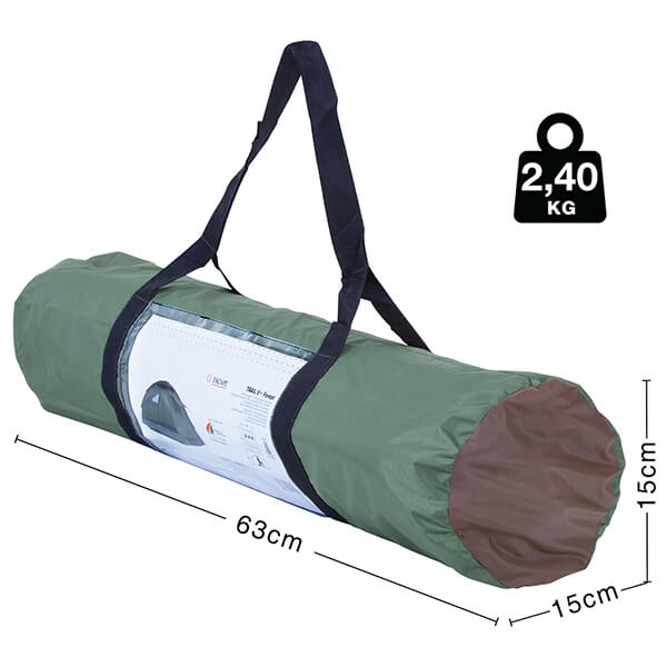 ΣΚΗΝΗ ESCAPE TRAIL II+ FOREST 210Χ180Χ130 1 ΠΟΡΤΑΣ ΜΟΝΗΣ ΟΡΟΦΗΣ 11202 TRV.170661 TRV.170661 ESCAPE ESCAPE ΣΚΗΝΕΣ Κατηγορία: ΣΚΗΝΕΣ •ESCAPE στην κατηγορία ΣΚΗΝΕΣ Σκηνή για καλοκαιρινές εξορμήσεις στην εξοχή και την παραλία. -Διαθέτει σκελετό από fiberglass, υλικό το οποίο είναι ελαφρύ, ανθεκτικό, ευέλικτο και προσφέρει μέγιστη στήριξη στο πανί της σκηνής. -Το πάτωμα είναι κατασκευασμένο από PE 110g/m2 και παρουσιάζει αντοχή σε διάφορες επιφάνειες. -Το εξωτερικό υλικό είναι από Polyester 190T το οποίο προστατεύει από την ζέστη. -Η σκηνή έχει αδιαβροχοποίηση PU1000. -Διαθέτει 2 παράθυρα 40x40 εκατοστά, ενώ τόσο η πόρτα όσο και τα παράθυρα έχουν κουνουπιέρες. -Το μέγεθος της σκηνής είναι 210x180 εκατοστά, με 130 εκατοστά μέγιστο ύψος. Μπορεί να φιλοξενήσει άνετα μέχρι 2 άτομα ενώ θα έχετε χώρο και για τα προσωπικά σας αντικείμενα.Χαρακτηριστικά • Εξωτερικό Υλικό: Polyester 190T.• Οροφή: Μονή.• Εσωτερικό ύψος: 130 cm.• Διαστάσεις: 210x180cm.• Δωμάτια: 1.• Χωρητικότητα: 2 άτομα.• Πόρτες: 1.• Παράθυρα: 2.• Αδιαβροχοποίηση: PU 1000.• Πάτωμα: PE 110g.• Πάχος μπανέλας: Fiberglass Φ7.9mm.• Διαστάσεις Συσκευασίας: 63 x 15 x 15 cm.• Βάρος: 2.40 kg.